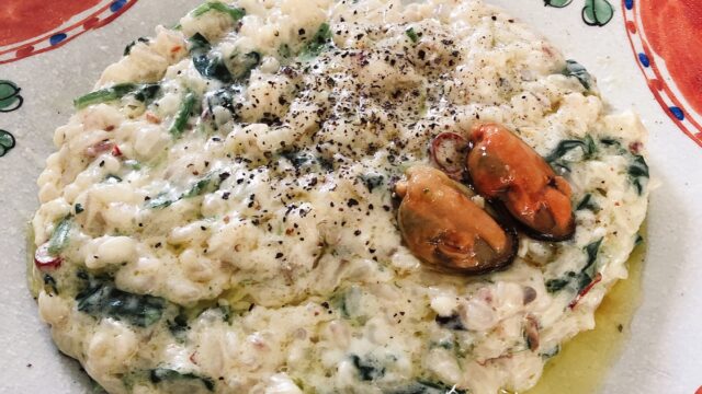 西洋料理 アヒージョの残ったオイルのリゾット