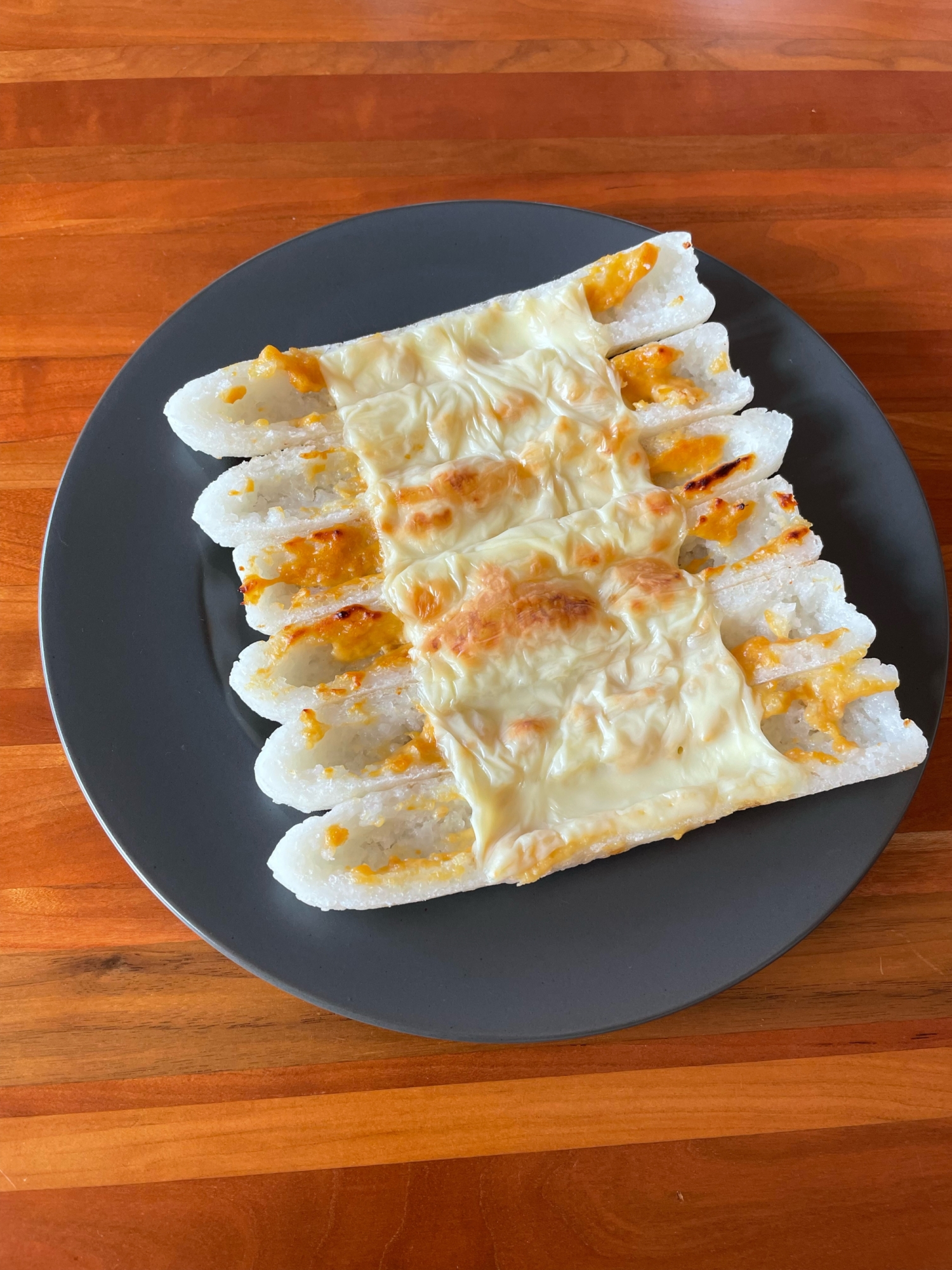 外はサクサク、中はふわもちのきりたんぽを使った味噌チーズドッグです。朝ご飯や酒のつまみにピッタリ。