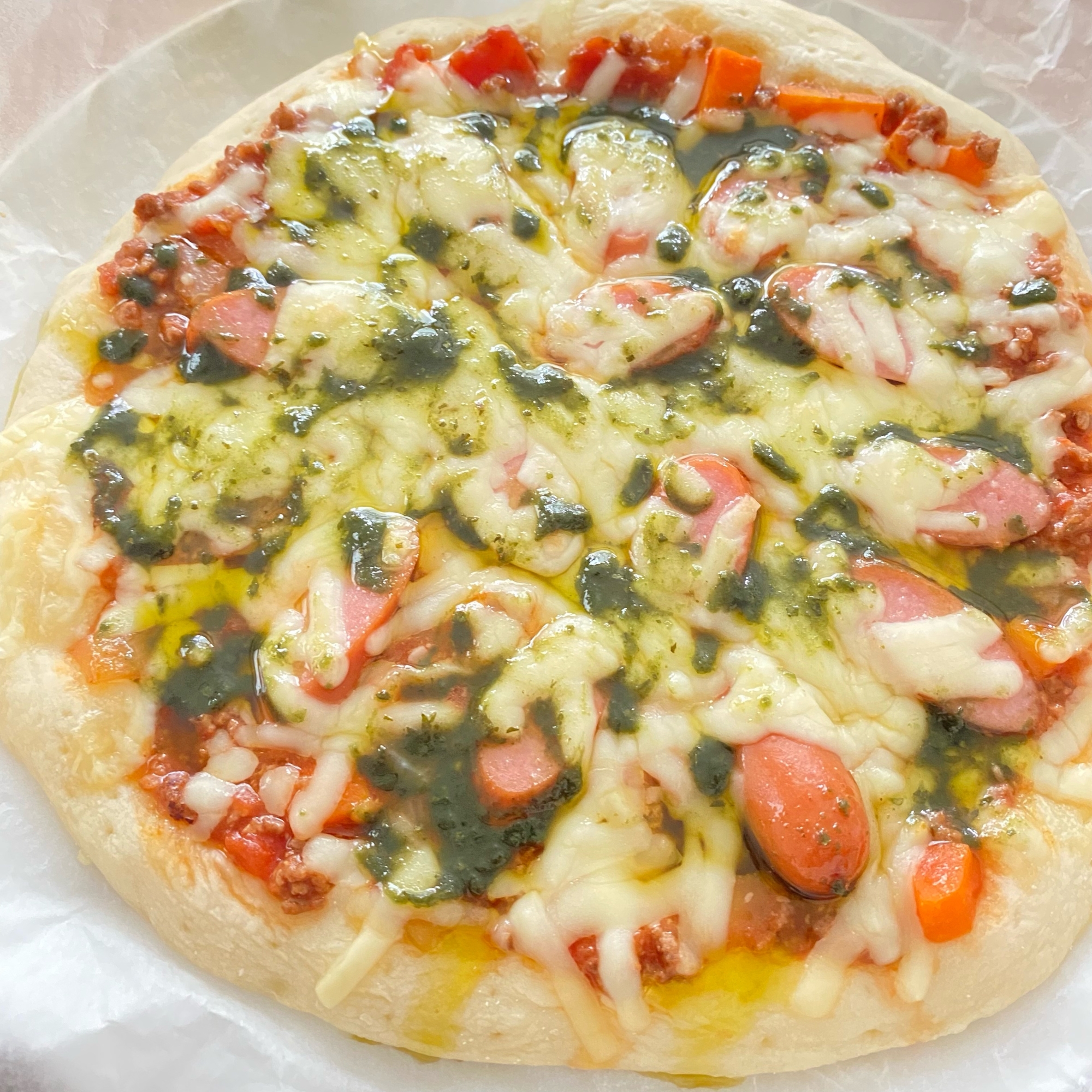 手作りピザ*バジルソースでマルゲリータ 2026.01.01 ピザ生地レシピID:1130013749参照 ミートソースレシピID:1130013938参照 パスタ用のバジルソースをかければ、お店の味!! レシピはこちら (楽天レシピ)