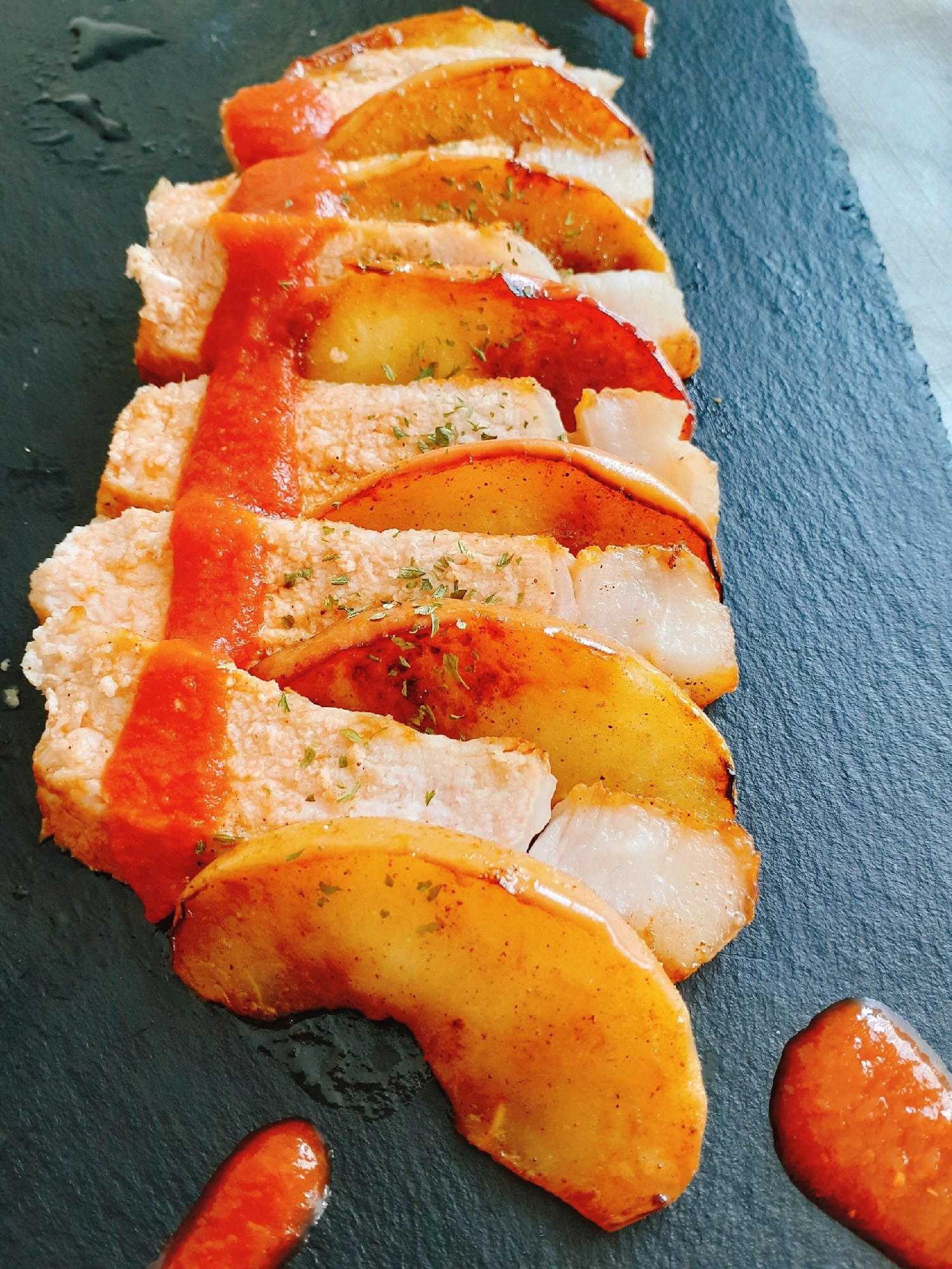 豚肉と相性の良いりんごを合わせた一品です。ジューシーな豚肉とりんごの程よい酸味と食感がくせになる美味しさです。お酒もすすみます。