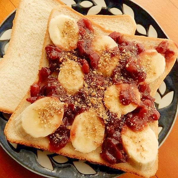 4分!?黄な粉を胡麻で❤バナナ餡子サンドイッチ♪ 2026.01.01 餡トーストをヘルシーにするのは、果物♪バナナは、もったり感があるので合います❤・・❤ゴマの栄養価も高い↑ レシピはこちら (楽天レシピ)