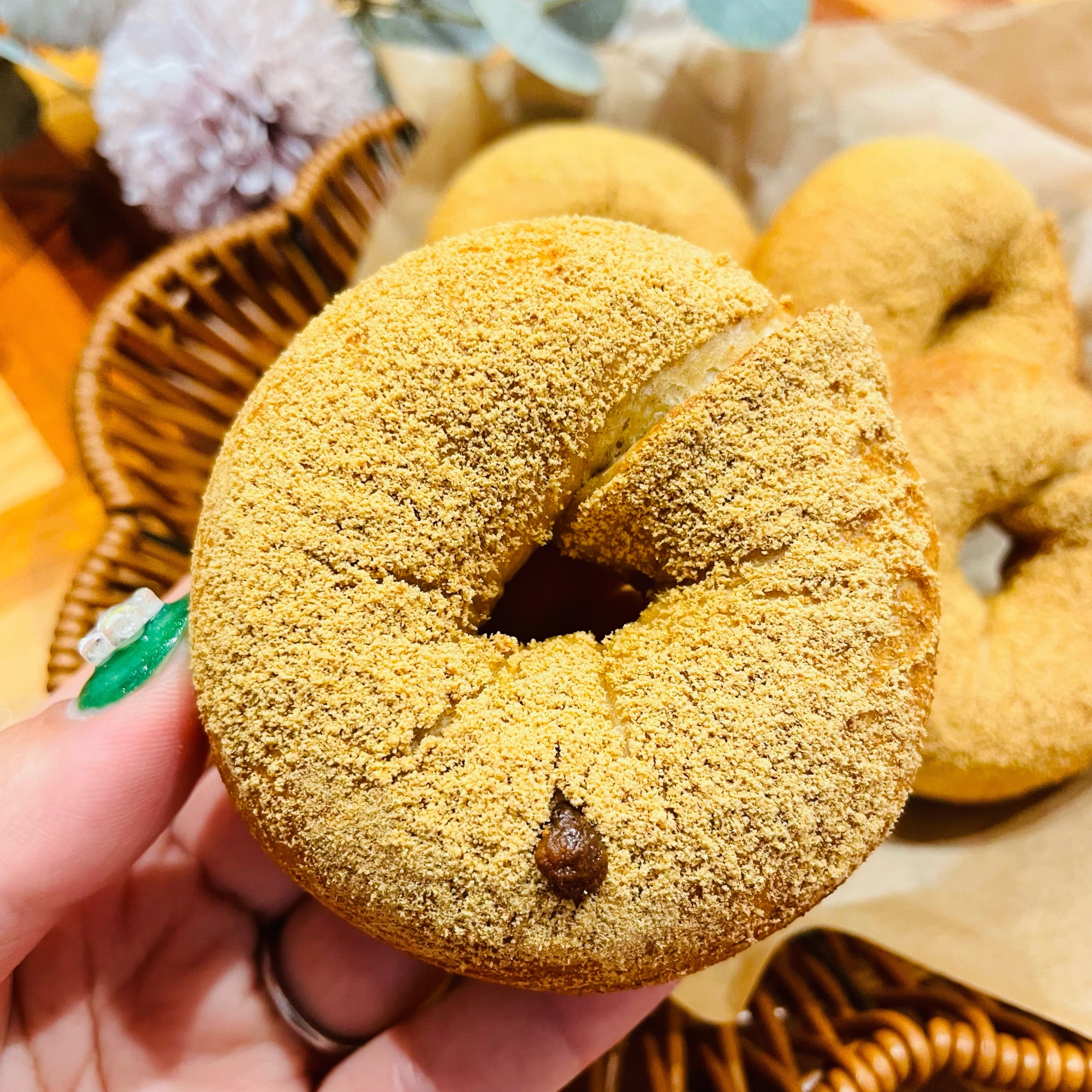 生地にもきな粉クリームもピーナッツきな粉を使ってるのできな粉好きにはたまらないベーグル!