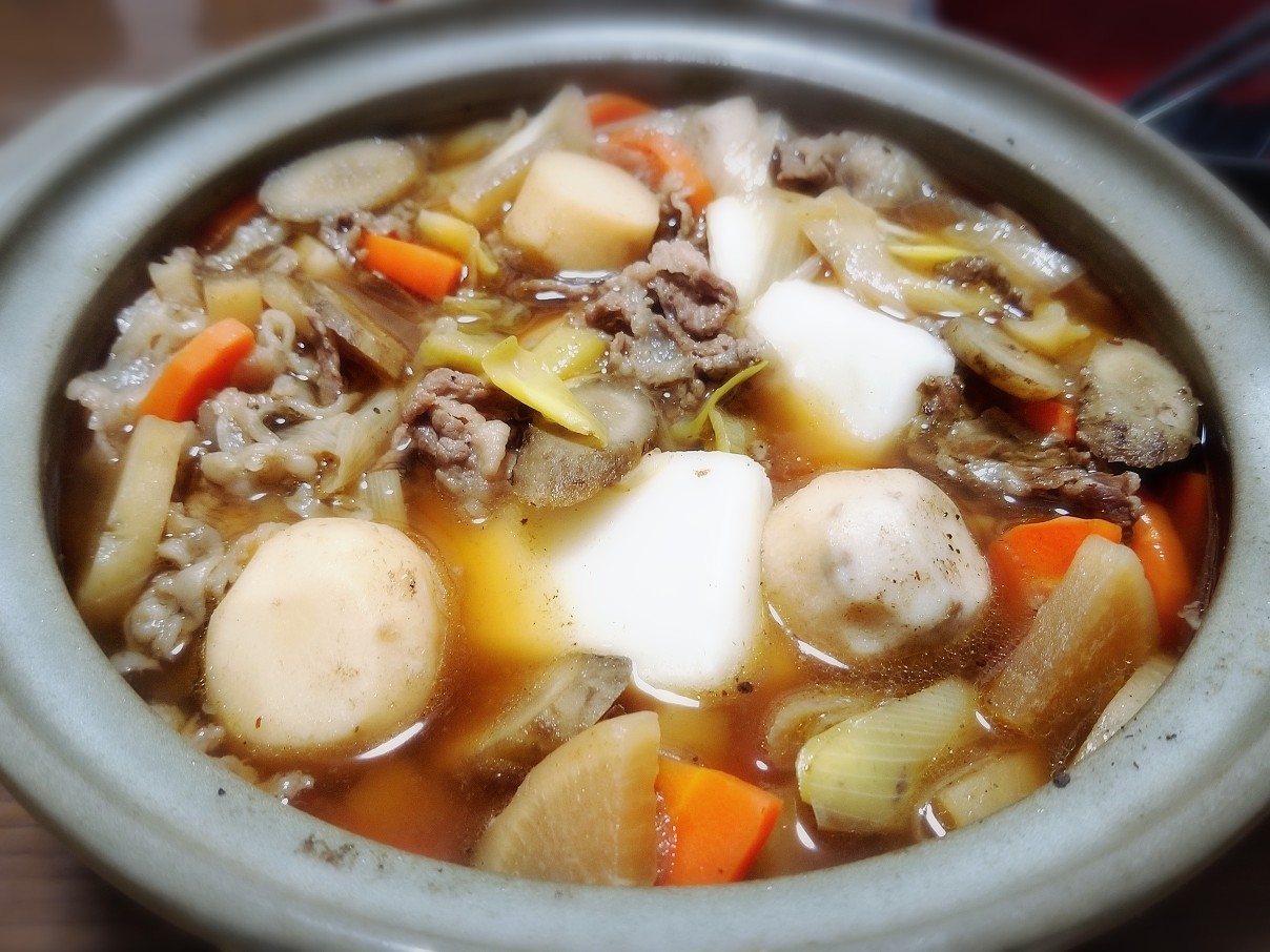 芋煮風(*^▽^*)b お雑煮★ 2025.12.04 牛肉の旨味が出たすき焼きの様な甘口の出汁に根菜たっぷり!! ホクホクねっとりとした里芋が美味しい♪ お餅を加えて、これ1品で満足出来ます(*^^*) レシピはこちら (楽天レシピ)