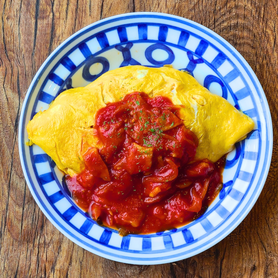 トマトジュースで作る イタリアンオムライス 2026.01.04 トマトソースとチキンライスにトマトジュースを使用しました。トマトジュースの酸味とオリーブオイルの風味が強めの、イタリアンな味わいです。 レシピはこちら (楽天レシピ)