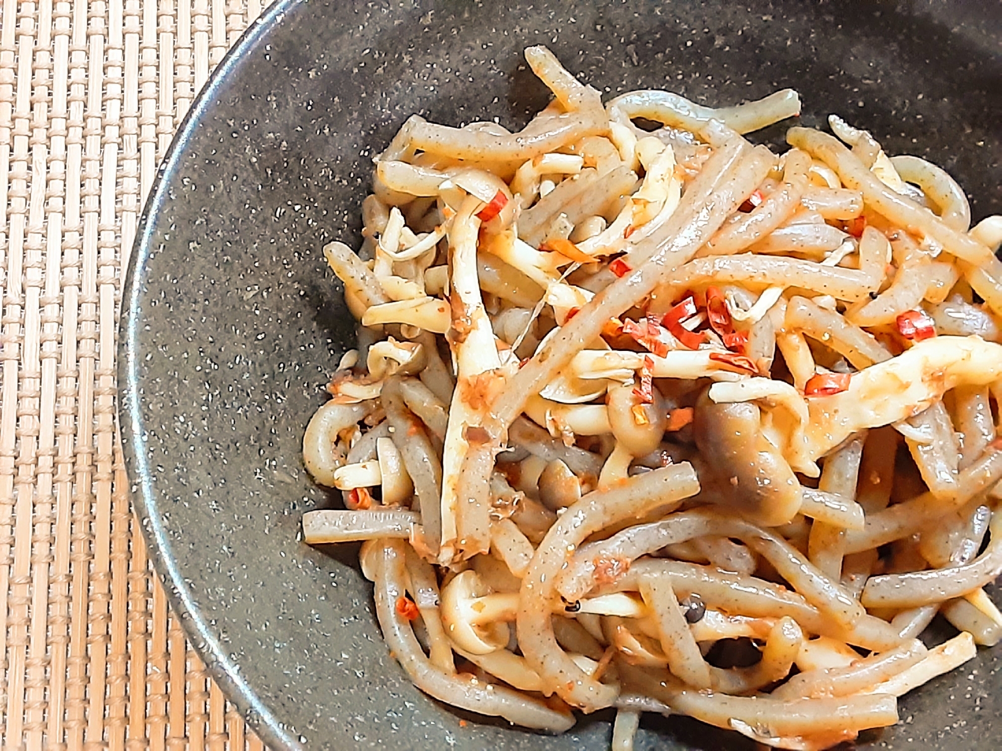 つきこんにゃくとしめじのピリ辛醤油炒め