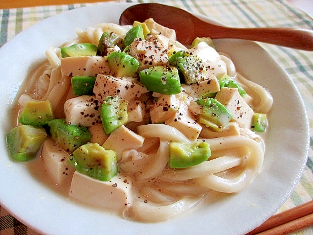 アボカドと豆腐のとろとろクリーミーうどん♪ 2026.01.12 スプーンとお箸で食べてねっ♪あったかいおうどんに、アボカドとお豆腐のとろとろソースが絡みます。よ~く水切りしたお豆腐はまるでチーズみたいな濃厚な味わいです♪ レシピはこちら (楽天レシピ)