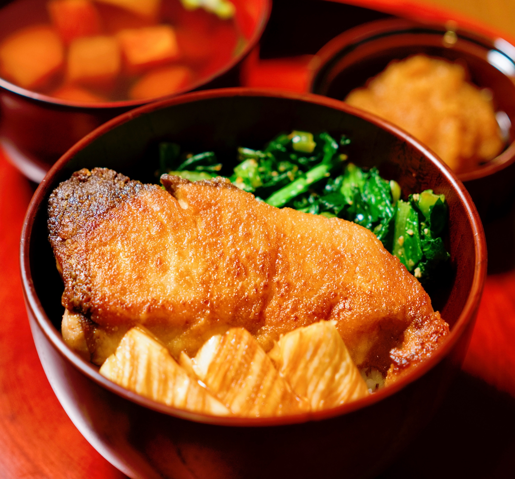 ぶりの照り焼き丼〜大根おろし酢添え 2026.01.01 甘辛いたれがからんだぶりの照り焼きを丼に! さっぱりした大根おろし酢とほろ苦い小松菜がぶりによく合う、バランスのよい一品です。 レシピはこちら (楽天レシピ)