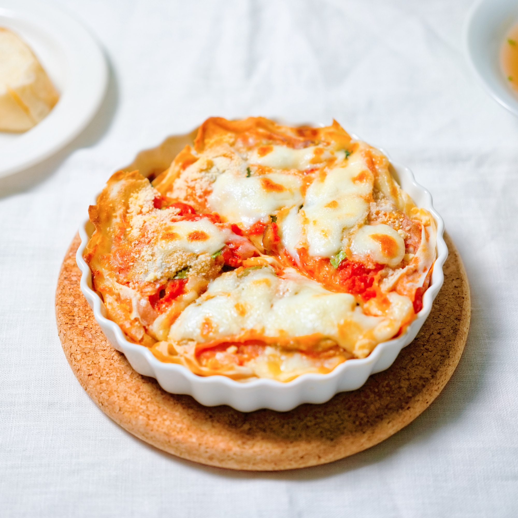 野菜のうまみを吸った春巻きの皮が、ラザニアとは違う軽やかさを演出します。