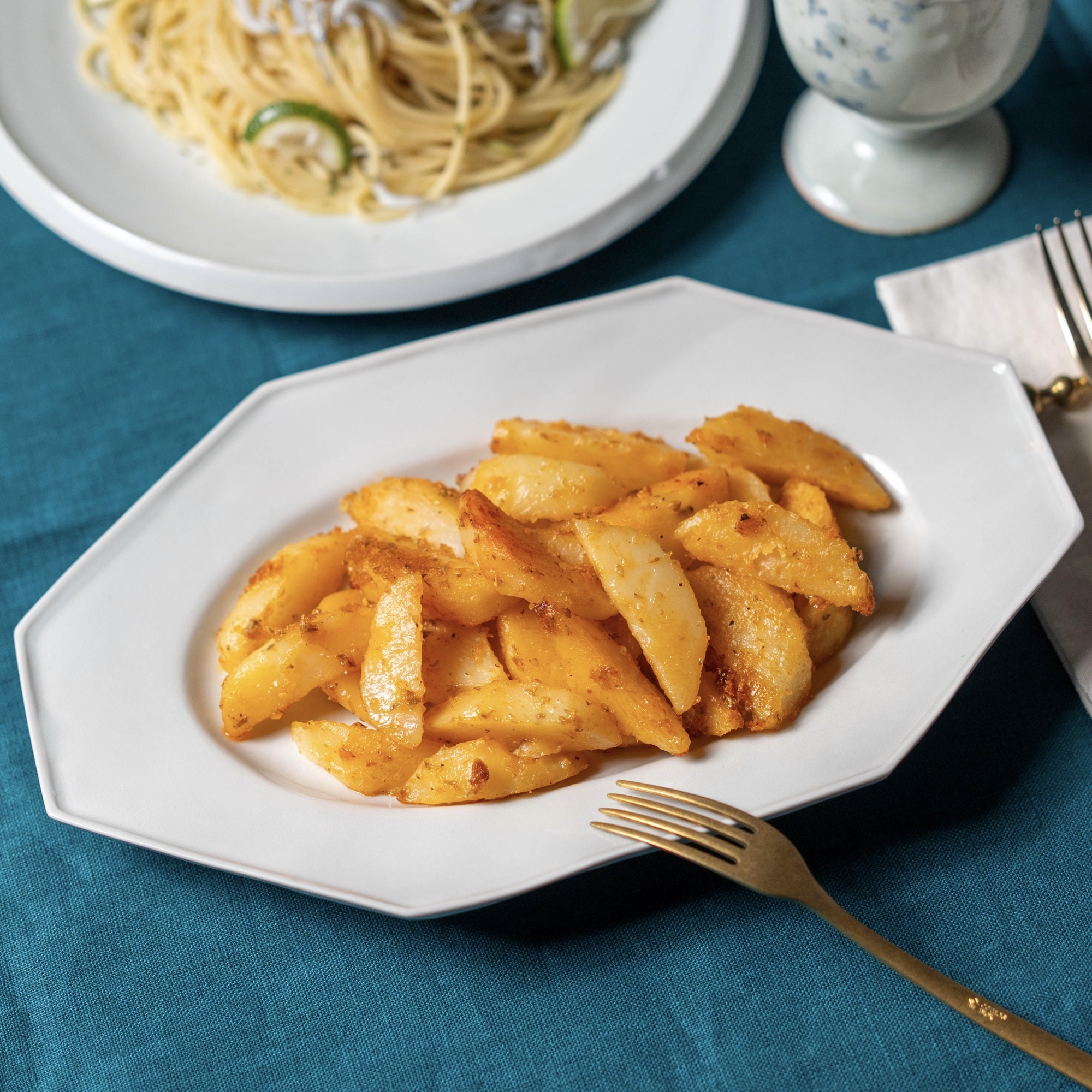 じゃがいもひとつだけという手軽さながら、洋食献立の副菜として存在感抜群の一皿です