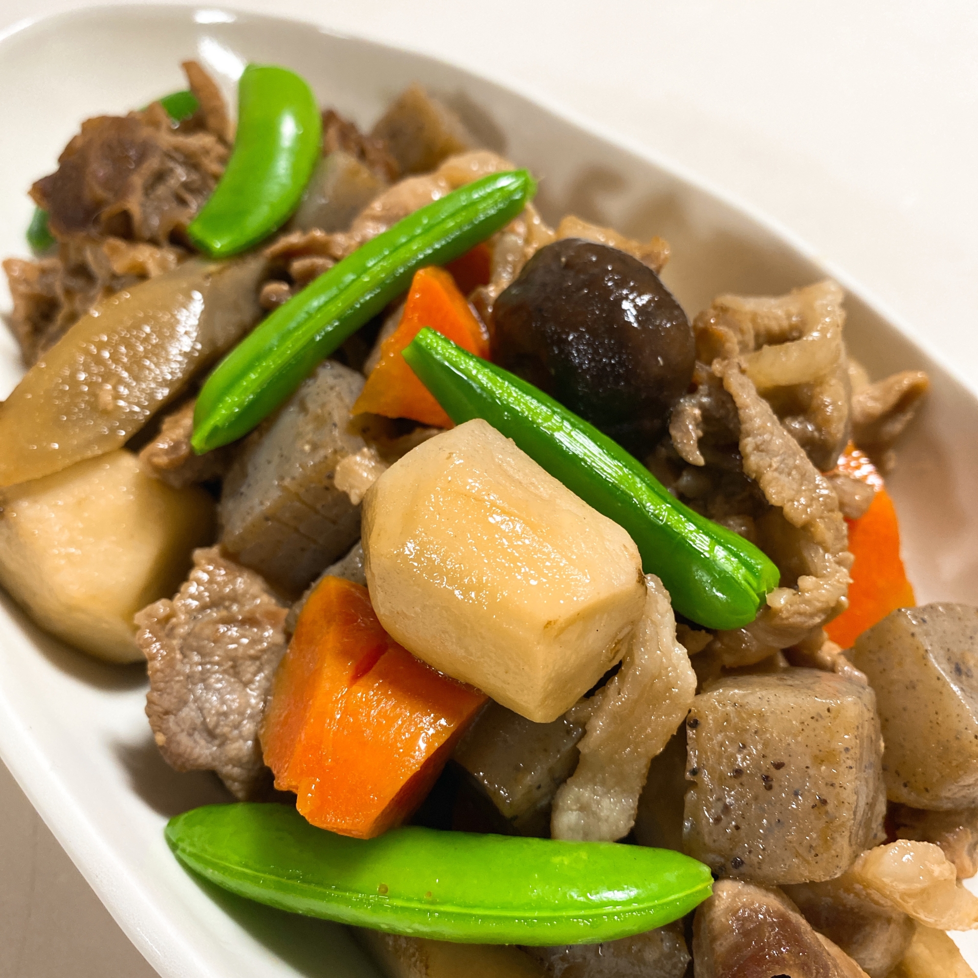豚こましかないけど〜美味しい筑前煮的なの。 2025.12.26 いつもは鶏もも肉を使いますが 冷蔵庫には豚こましかない‼ けど、作ってみたら これはこれで美味しい。 照り照りにするとお肉も柔らか。 レシピはこちら (楽天レシピ)