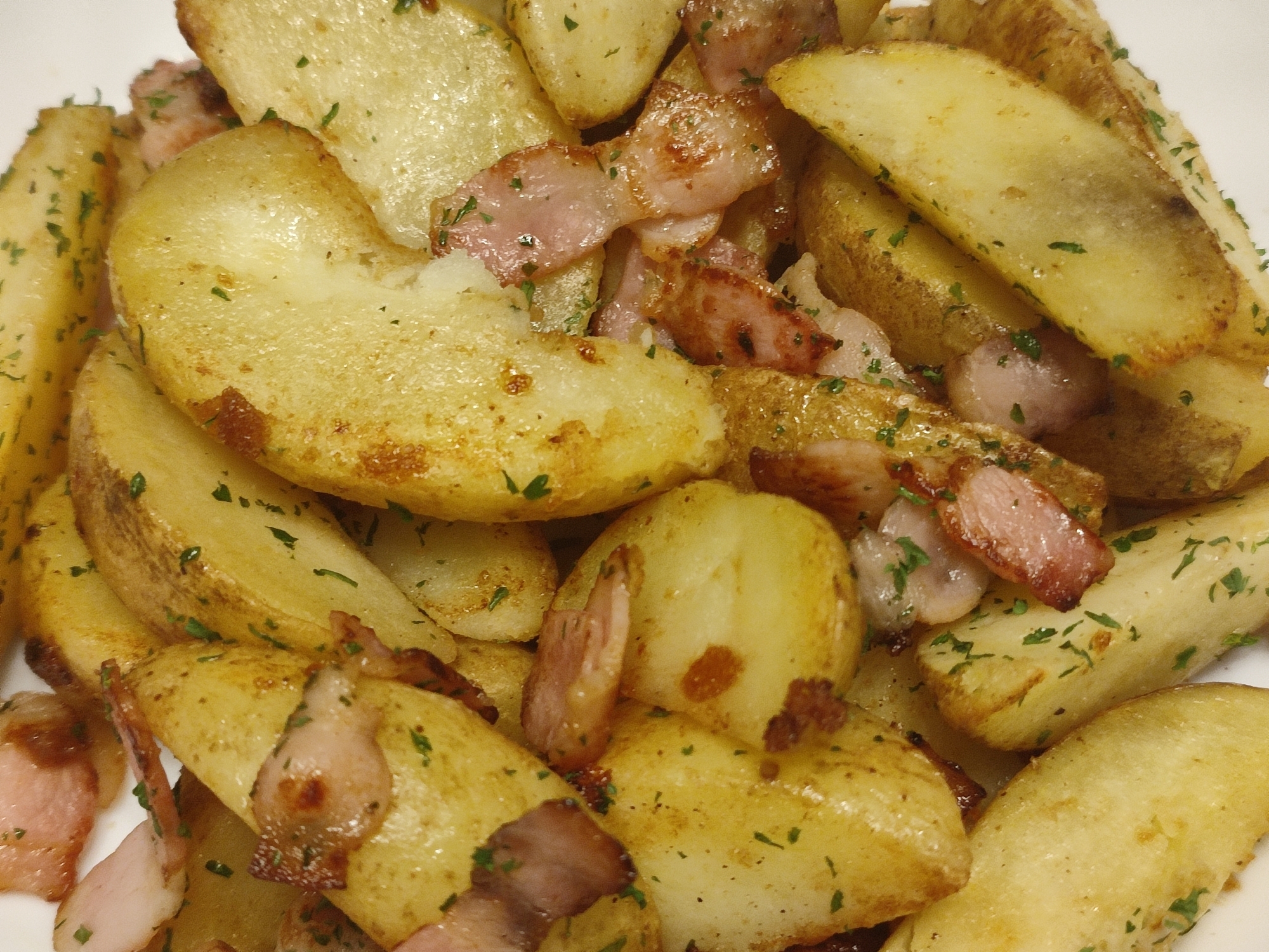 冷凍の皮付きポテトを使ってジャーマンポテトにしました。おつまみにも。
