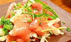 魚 スモークサーモンと水菜と大根のサラダ