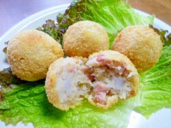 セレベスの親芋は下処理が簡単ですので短時間でモチモチコロッケがつくれます。もちろん里芋でも同様につくります。レシピはこちら(楽天レシピ)