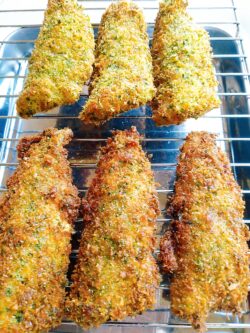 パン粉に青のりをまぶしてふっくらと揚げたアジフライです。身はふんわりと柔らかく、アジに下味がついているので青のりの香りで美味しくいただけます。レシピはこちら(楽天レシピ)
