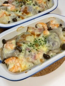人気メニュー ねっとり美味しい♪里芋とエビの和風グラタン