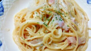 決め手はチーズ!スパゲッティーを別ゆでしなくてOK洗い物も少なくフライパン1つでOKチーズで濃厚に仕上げます。レシピはこちら (楽天レシピ)