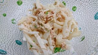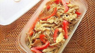 ピーマンと塩昆布を混ぜたものです。ごま油がアクセント。手軽に作れるのでお弁当の隙間がある時などに便利かと思います。なお、冷凍可能です(私の環境では2週間)。レシピはこちら (楽天レシピ)