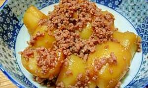 人気メニュー ひき肉とジャガイモで、ジャガイモのそぼろ煮 煮汁は、しょう油・みりん・酒・お水を同量で。ジャガイモの頭が出るぐらいに、調整してください。レシピはこちら (楽天レシピ) 2021.12.03 人気メニュー