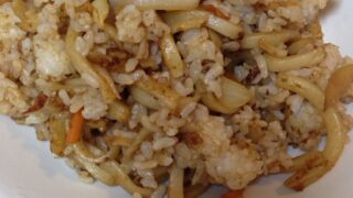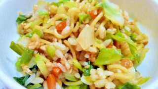 そばめしに野菜をたっぷり入れました。ご飯も野菜もお肉も、一度に食べられるので、休日のお昼にぴったりです。子供が大好きな味なので、野菜もたくさん食べてくれますよ。レシピはこちら (楽天レシピ)