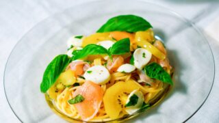 果物 キウイ、生ハム、モッツァレラチーズの冷製パスタ