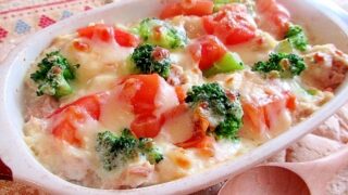 人気メニュー トマトとツナのヘルシー豆腐クリームグラタン♪