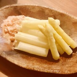 旬のホワイトアスパラに、玉ねぎ入りのオーロラソースを添えて!生のホワイトアスパラの風味は格別です!レシピはこちら(楽天レシピ)