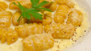 チーズでコクを足す変わりに、牛乳+生クリームであっさりソースにする。ニョッキの甘みとチーズとベーコンの香りがたまらない。レシピはこちら (楽天レシピ)