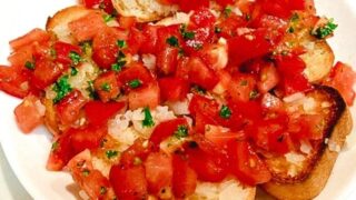 フランスパンで簡単にできるブルスケッタです♪パスタの前菜やお酒のつまみ、オードブルに^^レシピはこちら (楽天レシピ)