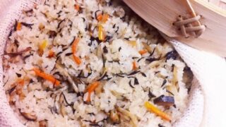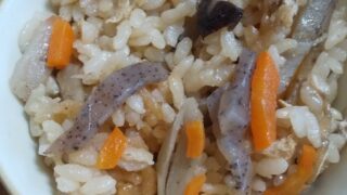 兵庫で買ってきたすだれ貝をつかった、春らしい色合いの炊き込みご飯です。レシピはこちら (楽天レシピ)