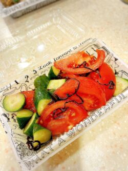 サラダ きゅうりとトマトの塩昆布あえ♡