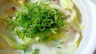 白菜たっぷりの塩麹豆乳かんたん鍋の仕上げにカマンベールチーズがとろりでスープまで美味しくレシピはこちら (楽天レシピ)