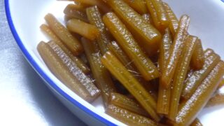 長くてチョット忙しい時には苦手な食材のひとつかも知れませんが、やる気になればチャチャッと出来上がる嬉しい美味しい一品です。レシピはこちら (楽天レシピ)